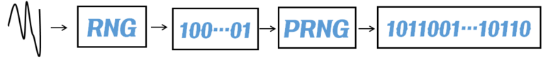 2) 엔트로피원으로부터 고품질 무작위 비트를 산출하는 암복호화 알고리즘 : 의사난수 발생기 ( pseudorandom number generators, PRNG )가 담당