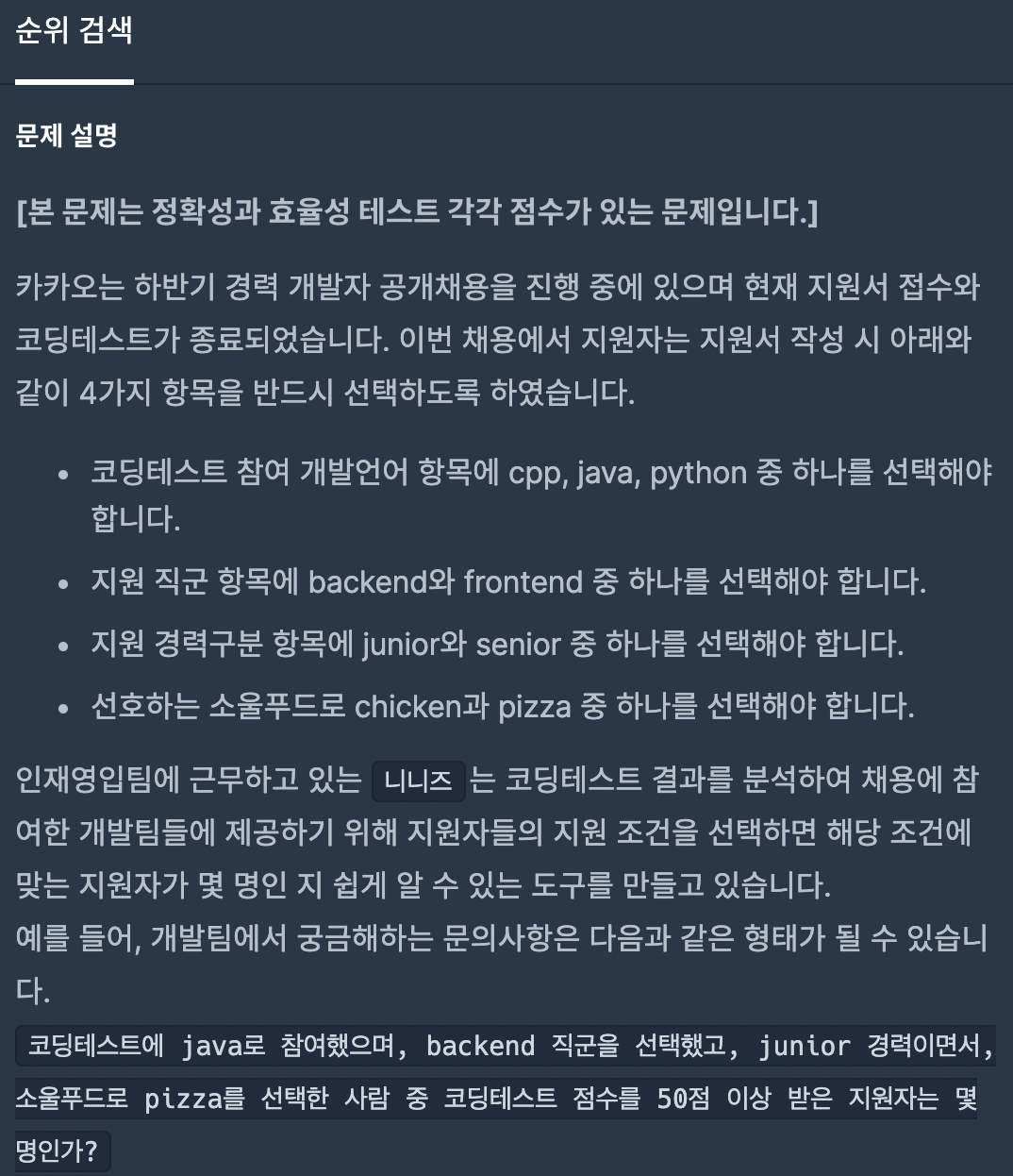 - 카카오 코테는 문제 조건만 맞추면 거의 대부분 통과한다. (효율성 테스트 없을때...^^)