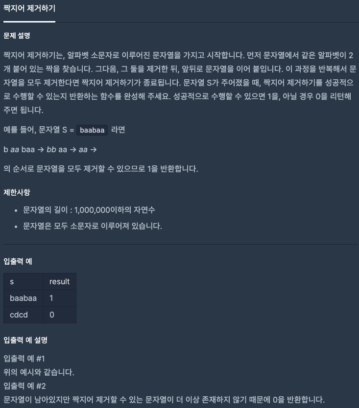| [프로그래머스] 짝지어 제거하기 (0) | 2021.01.30 |